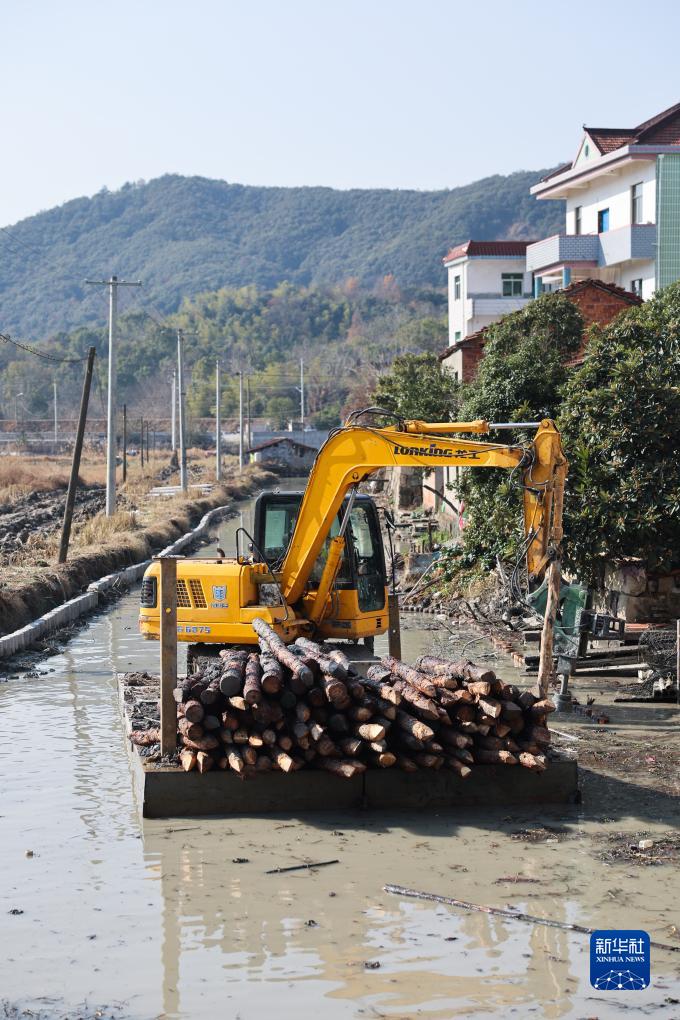 12月21日,浦陽江店口段綜合治理工程的內河河道加固正在施工。