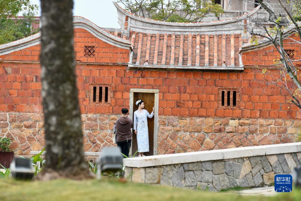 12月19日,游客在福建晉江梧林村一處閩南傳統民居旁拍照。