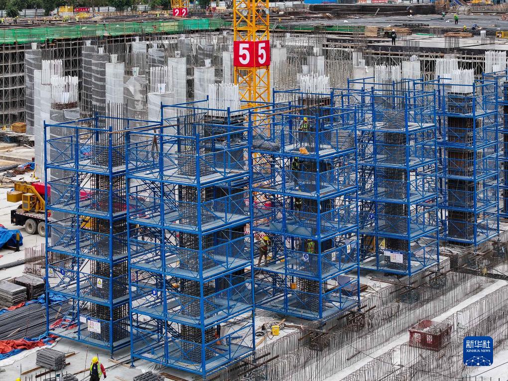 12月21日,建設者在穗莞深城際鐵路前皇段深圳中心公園存車場進行框架柱施工。