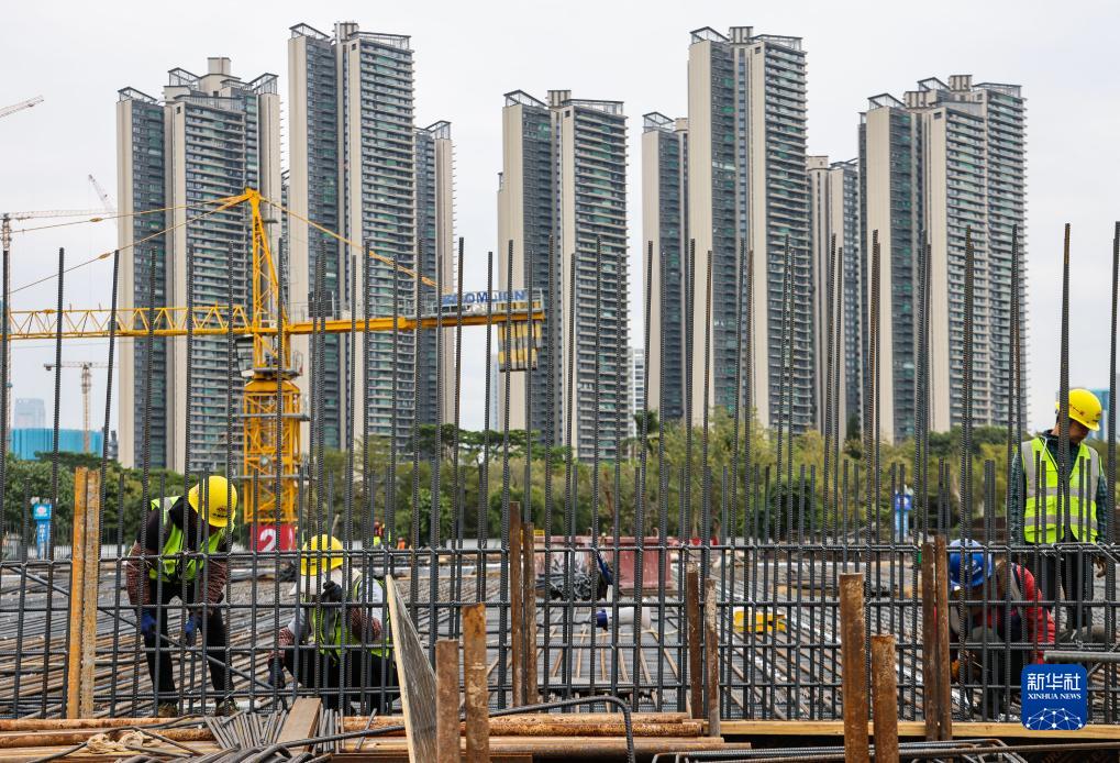 12月21日,施工人員在穗莞深城際鐵路前皇段深圳中心公園存車場綁扎頂板鋼筋。