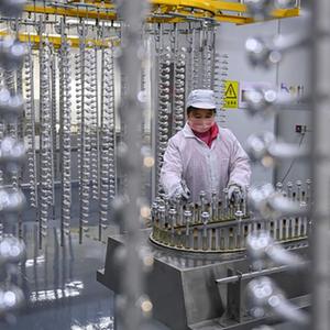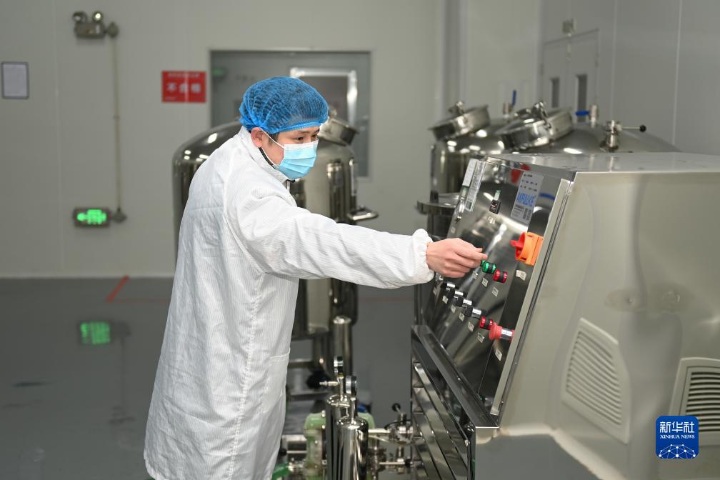 12月21日,工人在“美粧小鎮”內一家生産香水的化粧品企業車間作業。