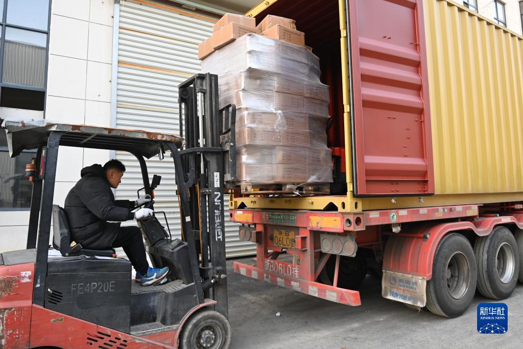 12月21日,“美粧小鎮”內一家香水企業工人將貨品裝入集裝箱,該貨品將從寧波舟山港出海。據了解,該企業産品在中東地區暢銷。