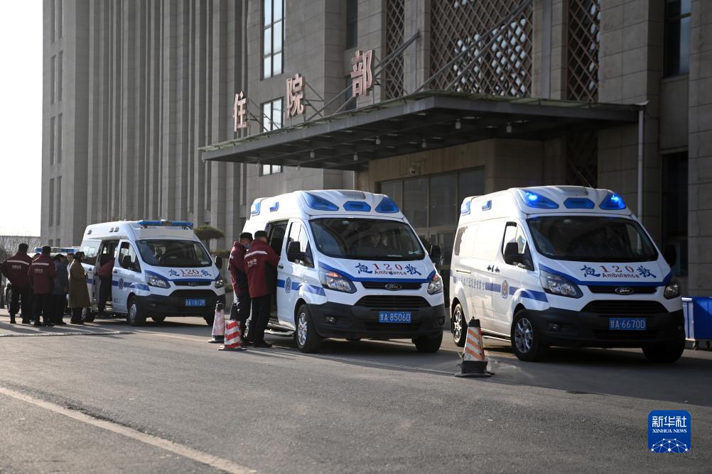 12月21日,在臨夏州人民醫院,急救人員準備轉運重症傷員。