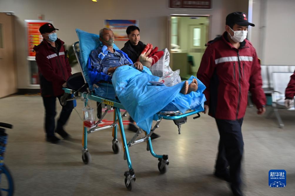 12月21日,在臨夏州人民醫院,急救人員在運送重症傷員。