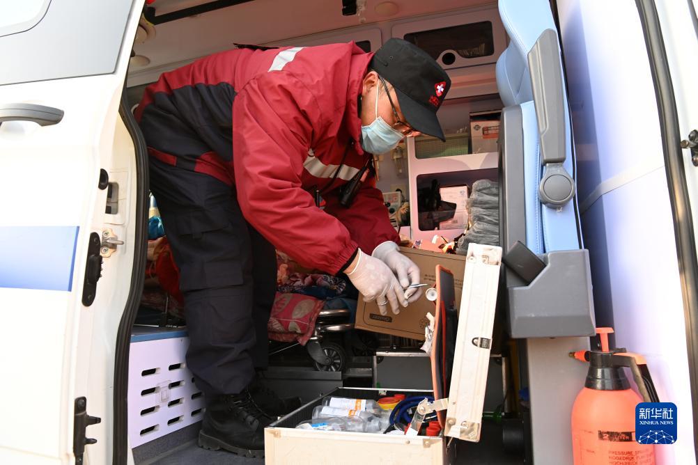 12月21日,在臨夏州人民醫院,急救人員準備轉運重症傷員。