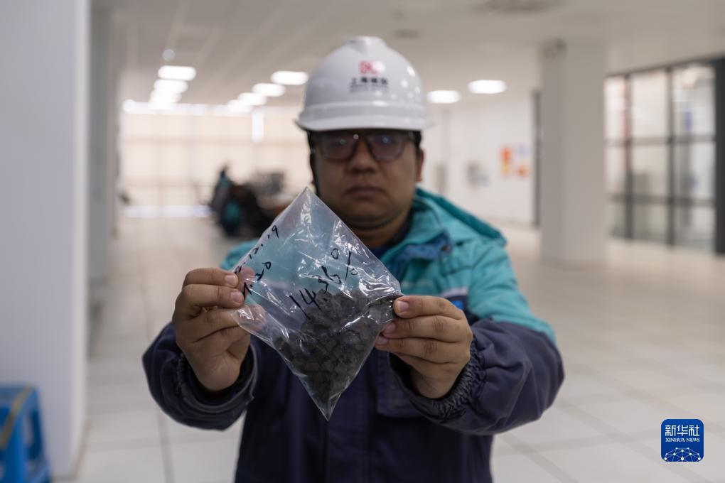 12月21日,上海城投水務(集團)有限公司工作人員展示經過處理後的泥樣。