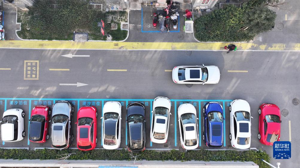12月21日,在江蘇省南通市崇川區新城橋街道易家橋貳號院,車輛在“潮汐泊位”停放整齊。