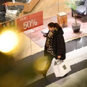 12月20日,行人經過德國柏林著名購物街選帝侯大街的一家打折商店。