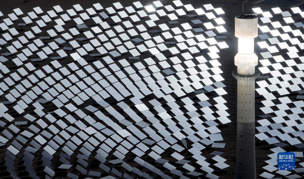 這是2023年6月11日在青海省海西蒙古族藏族自治州格爾木市拍攝的一座光熱電站(無人機照片)。