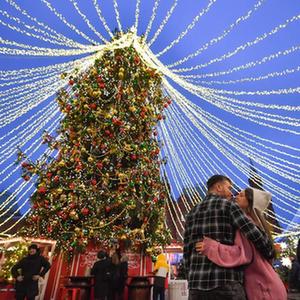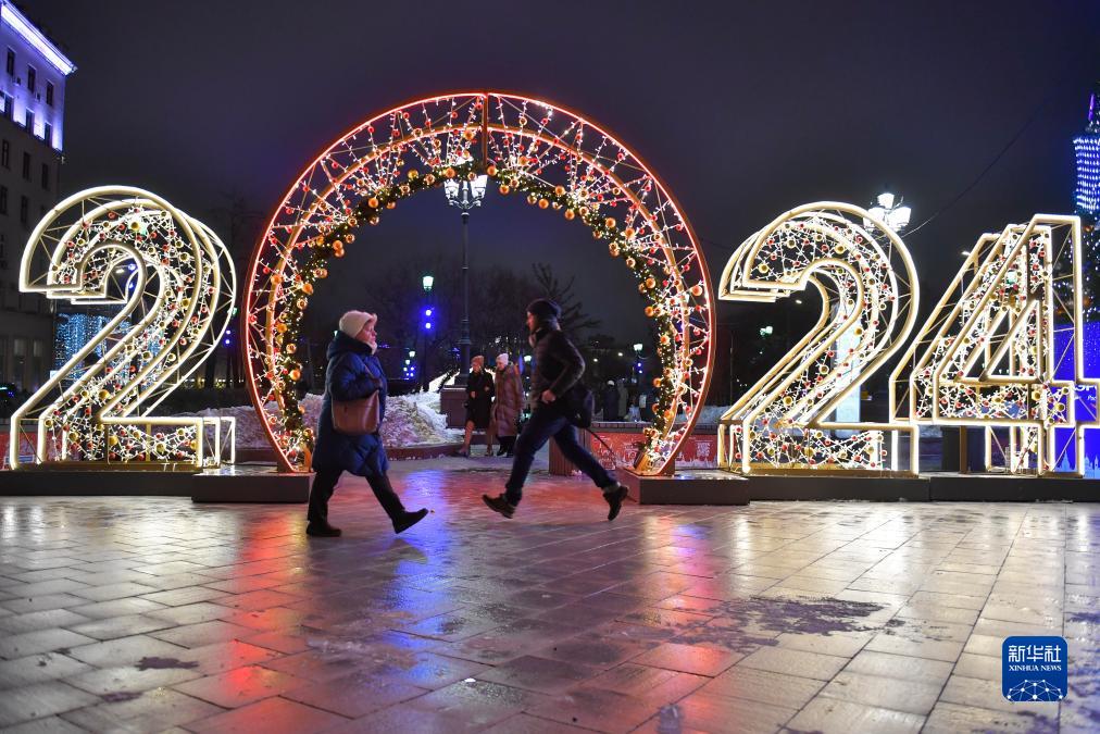 12月21日,在俄羅斯首都莫斯科,人們從新年裝飾前走過。