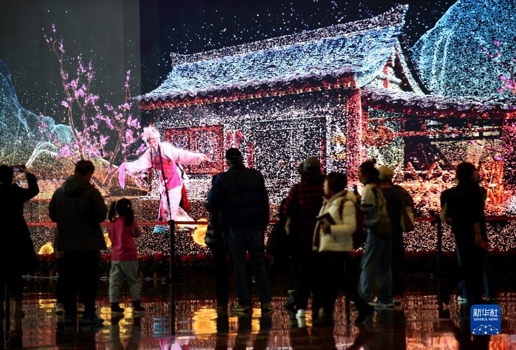 12月22日,觀眾在國家大劇院戲劇場入口觀看裸眼3D大屏。