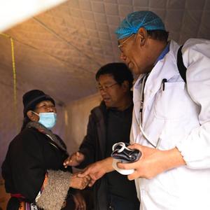 積石山6.2級地震發生後,青海省海東市循化撒拉族自治縣道幃藏族鄉牙木村部分房屋出現損毀,當地政府第一時間在牙木村建設安置點。因為年輕時就讀於衞生學校、掌握基本的醫療技能,60歲的完麼仁增成為安置點的義務衞生員,為村民量血壓並普及健康知識。“我想做些力所能及的事幫助鄉親們。”完麼仁增説。