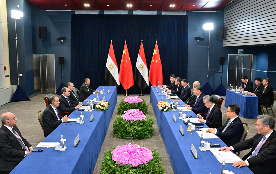 當地時間10月23日晚,國家主席習近平在喀山出席金磚國家領導人會晤期間會見埃及總統塞西。