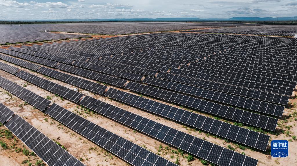 這是6月7日在巴西皮奧伊州拍攝的馬蘭加圖光伏電站(無人機照片)。 由中國國家電力投資集團公司(國家電投)巴西公司投資並主導建設的巴西馬蘭加圖光伏電站7日舉行投産儀式,這一光伏項目裝機容量達到446千瓦,每年可為近55萬戶家庭供電。 新華社記者 王天聰 攝