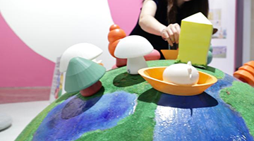 海燕在展示採取新的髹漆技術製作的多色雕漆裝飾球(9月21日攝)。