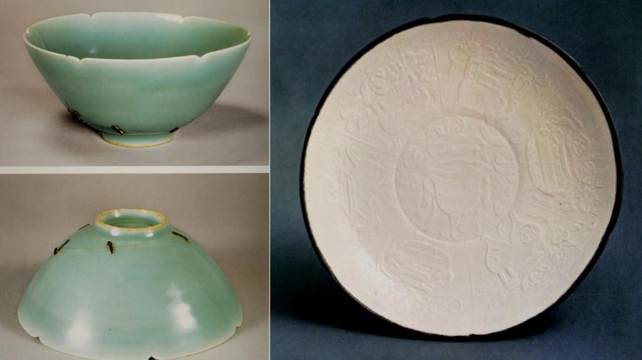 定窯的代表性窯場位於今天河北曲陽,從晚唐開始,這裡就以燒造白瓷著稱。在北宋早期,定窯白瓷若帶裝飾,手法多用刻劃花,此後則常為印花。
