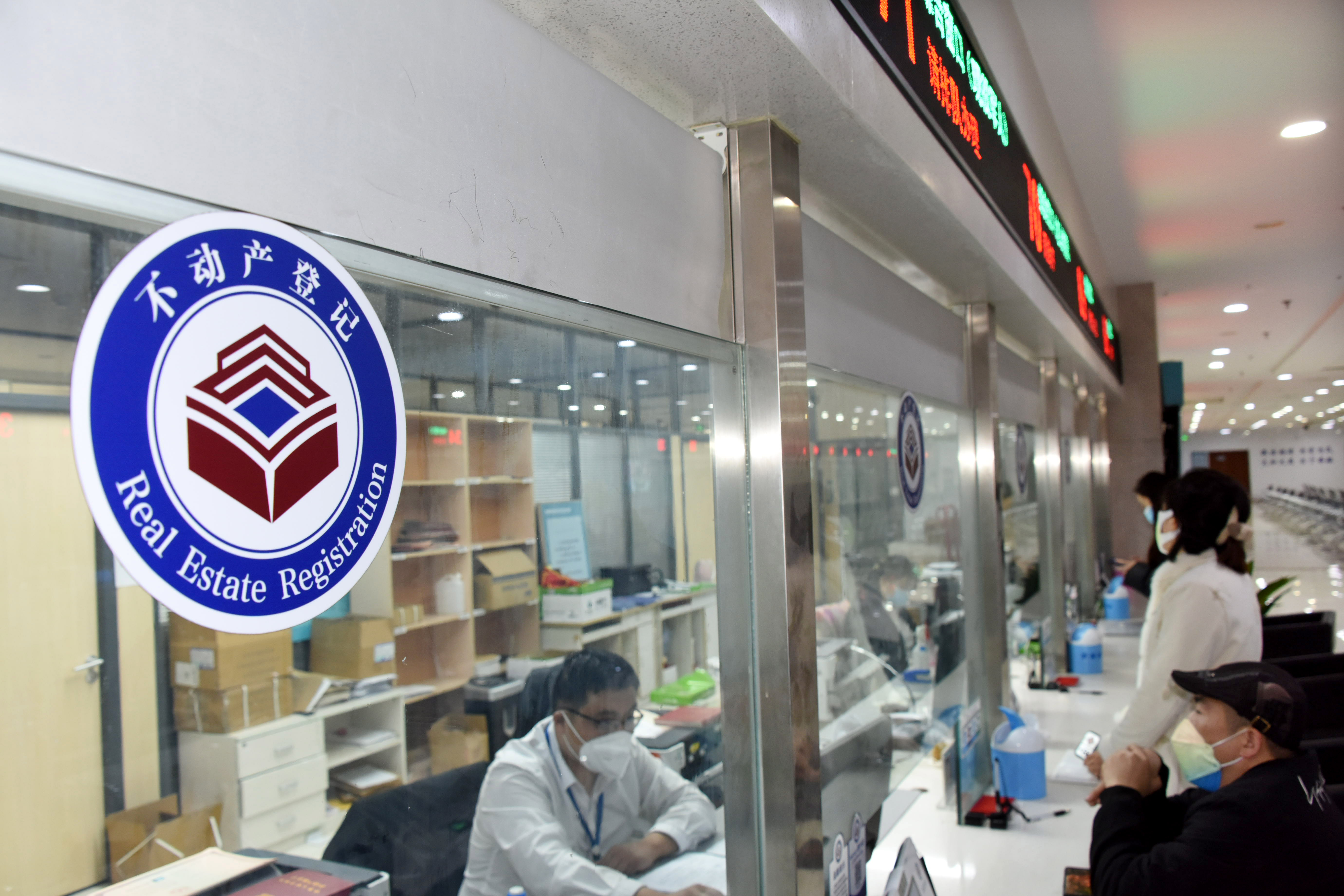 市民在青島西海岸新區不動産登記中心辦理不動産權證書。新華社記者 李紫恒 攝