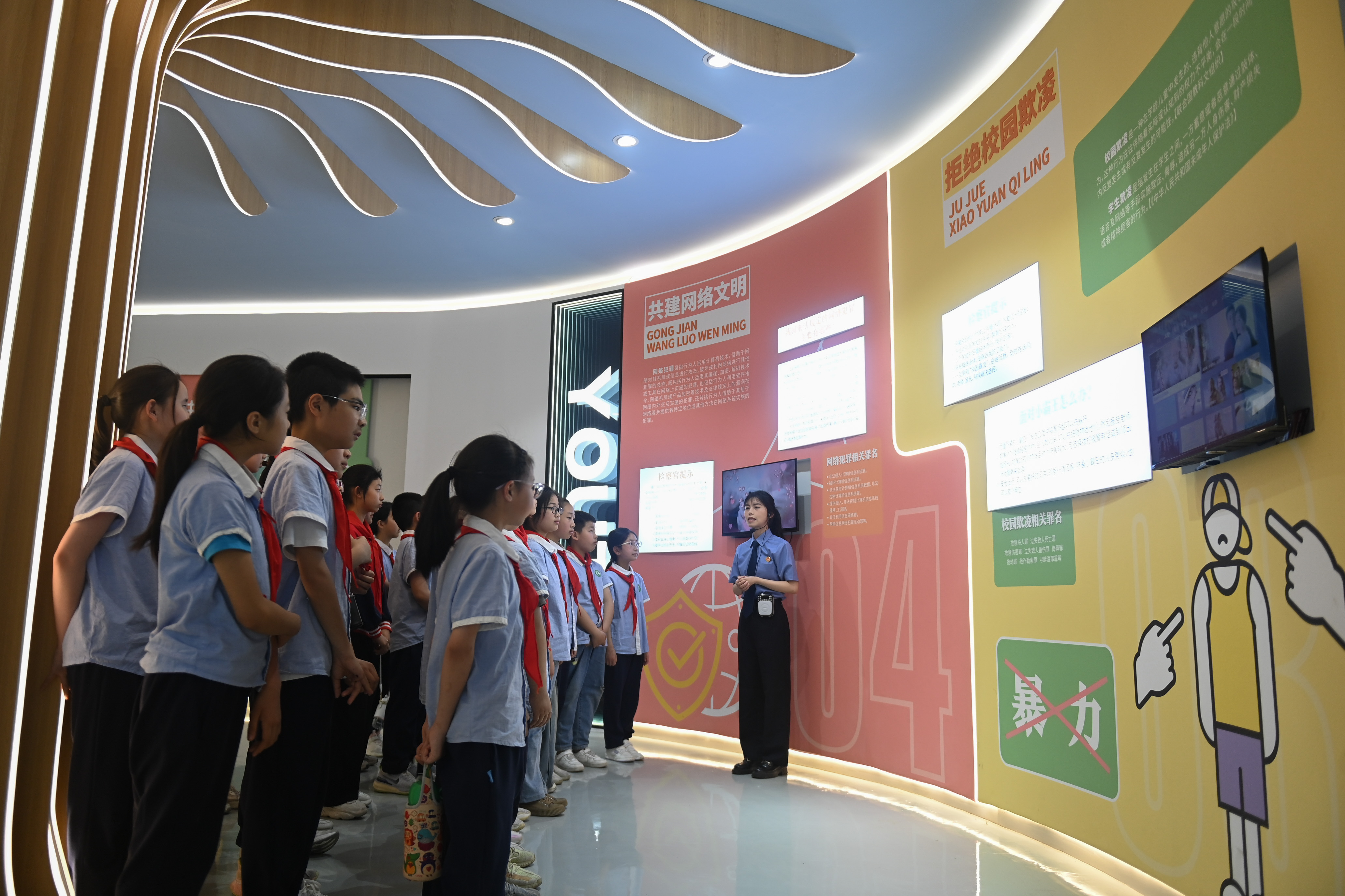浙江省台州市仙居縣安洲小學的學生在未成年人法治教育基地了解防校園欺凌的法律知識。新華社記者 黃宗治 攝