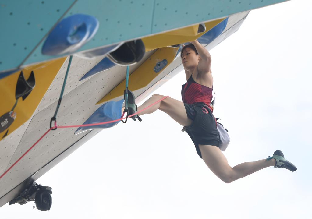 6月23日,中國選手駱知鷺在巴黎奧運會資格系列賽布達佩斯站攀岩女子兩項全能決賽中。新華社記者 賀燦鈴 攝