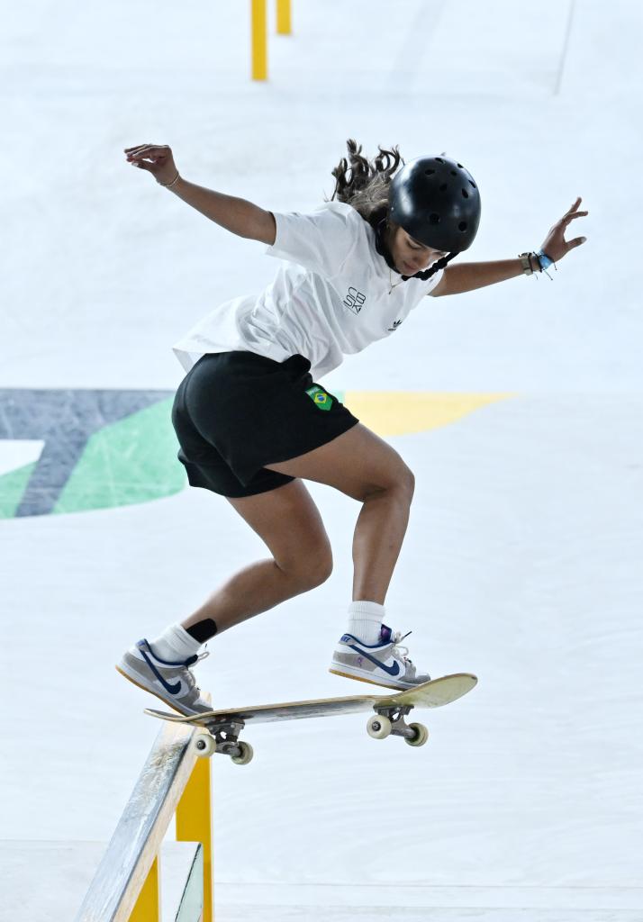 5月19日,巴西選手蕾薩·萊亞爾在巴黎奧運會資格系列賽上海站女子街式決賽中。新華社記者 陶希夷 攝