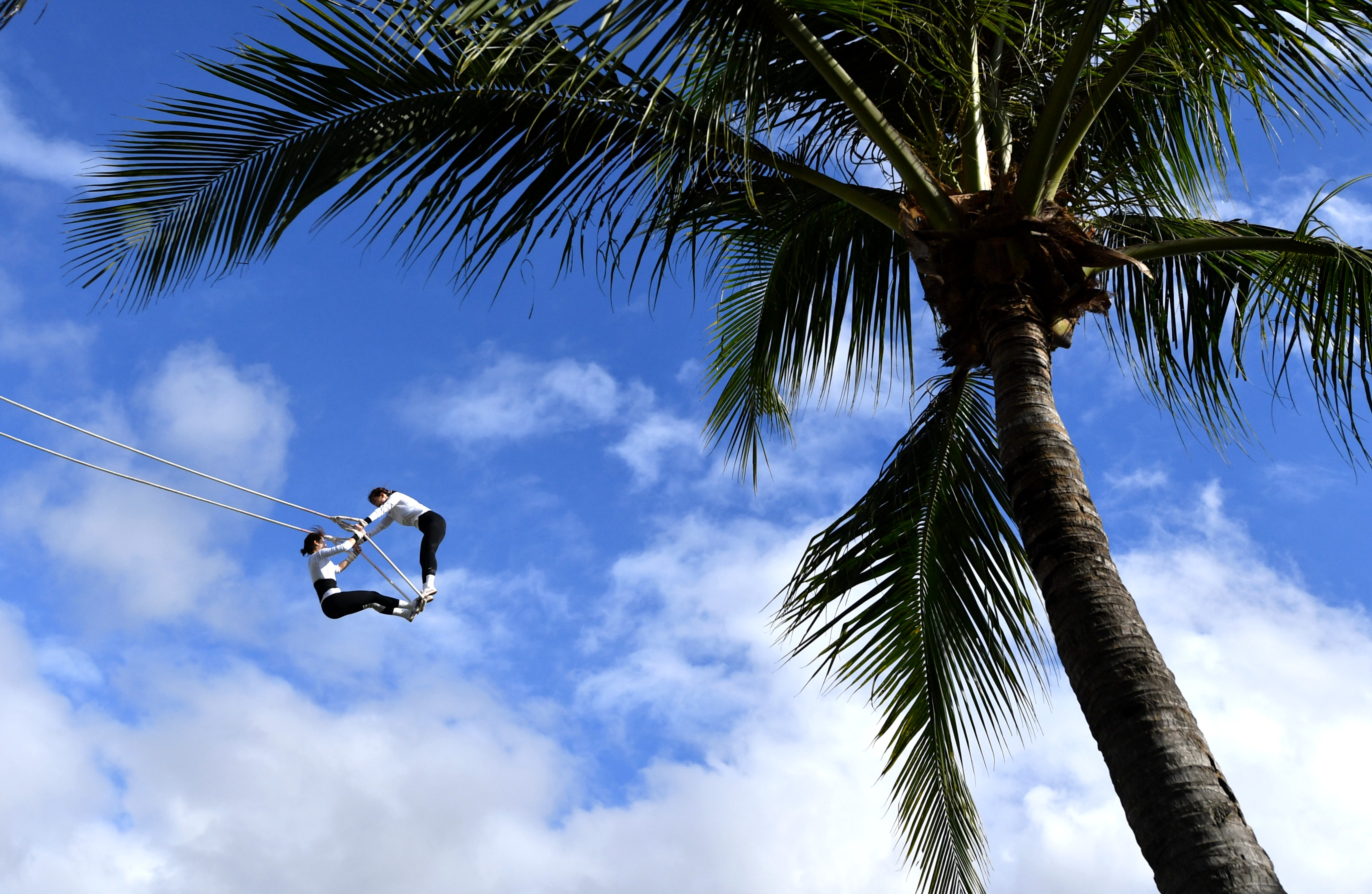 在9米(女子為7米)的人工製作的倣真椰子樹上進行攀爬