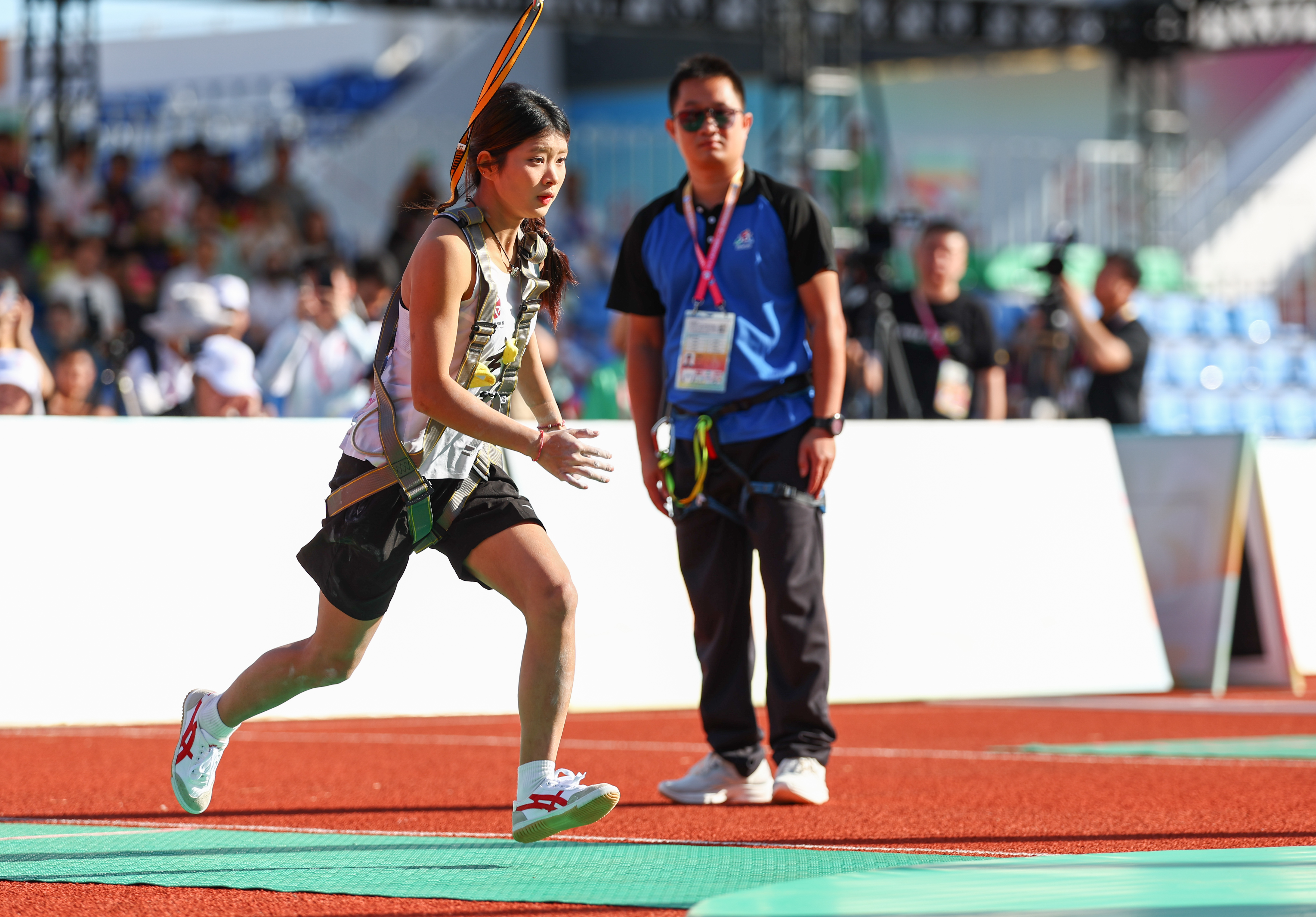 11月24日,雲南隊選手白玉美(左)在比賽中助跑。新華社記者 楊植森 攝
