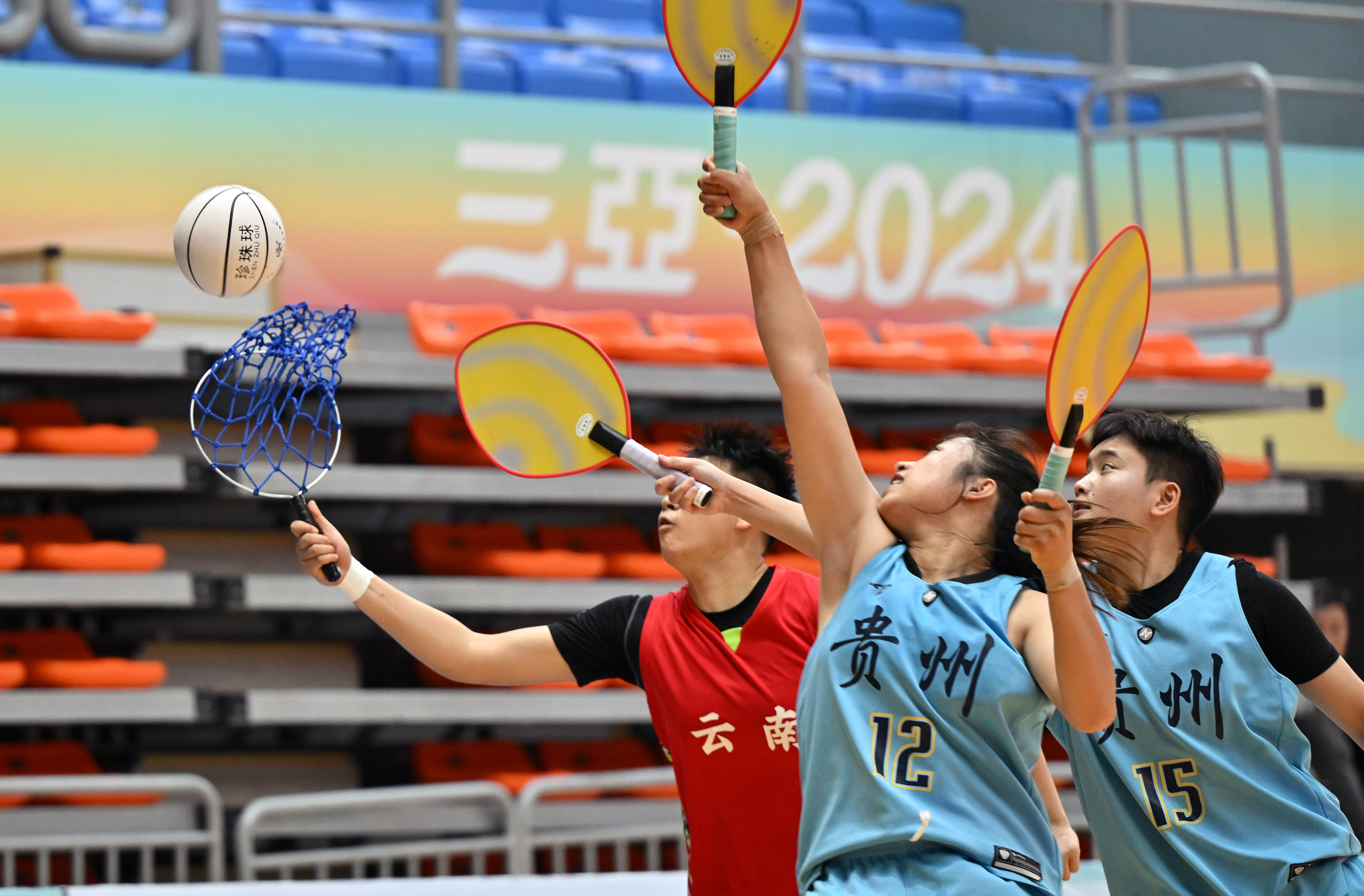 11月23日,湖南隊組合費遷紅吳安珍(右)在比賽中。最終,她們獲得一等獎。新華社記者 曹祎銘 攝