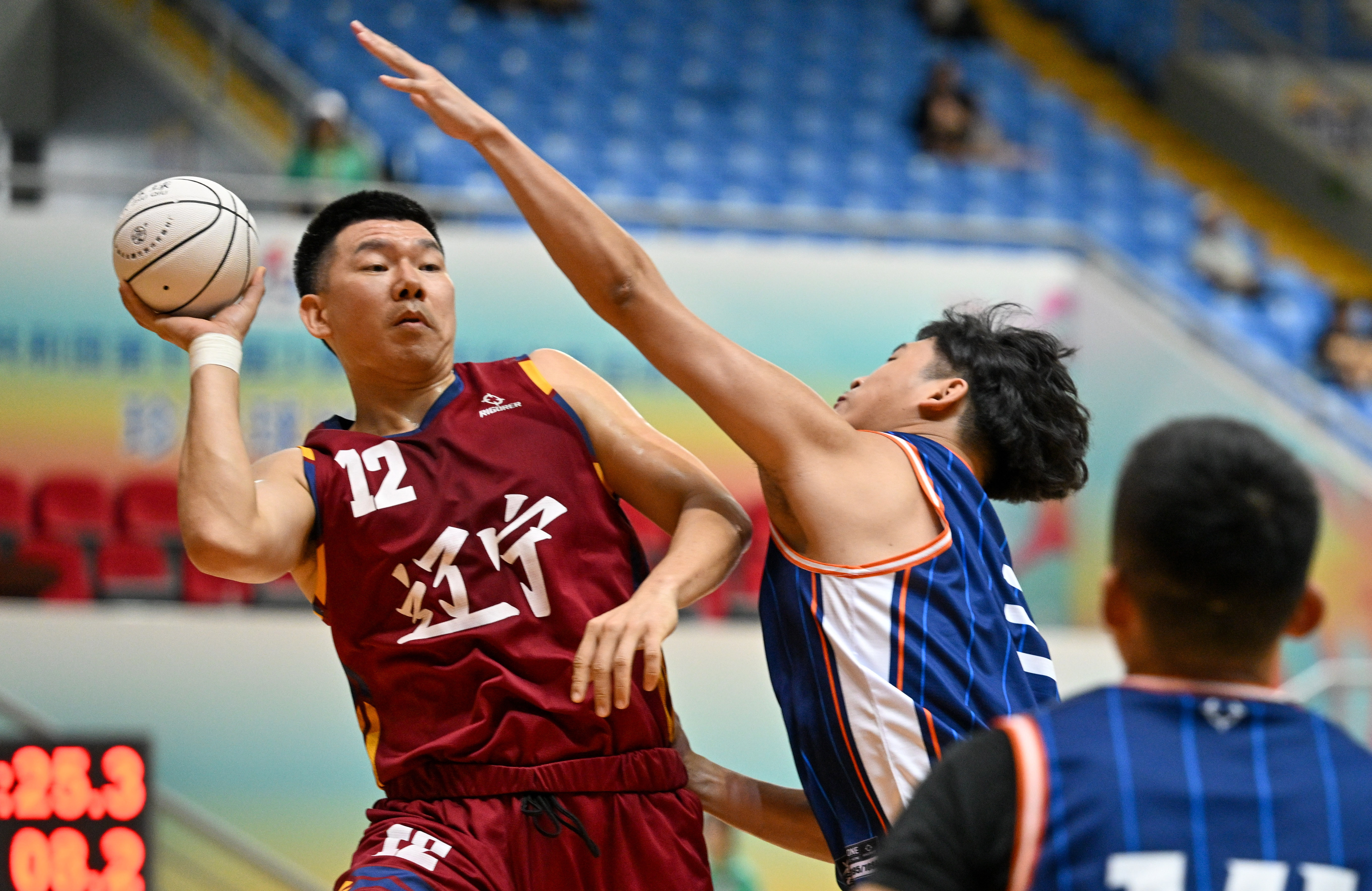 11月24日,遼寧隊選手包京泉(左)在比賽中投球。新華社記者 孫凡越 攝