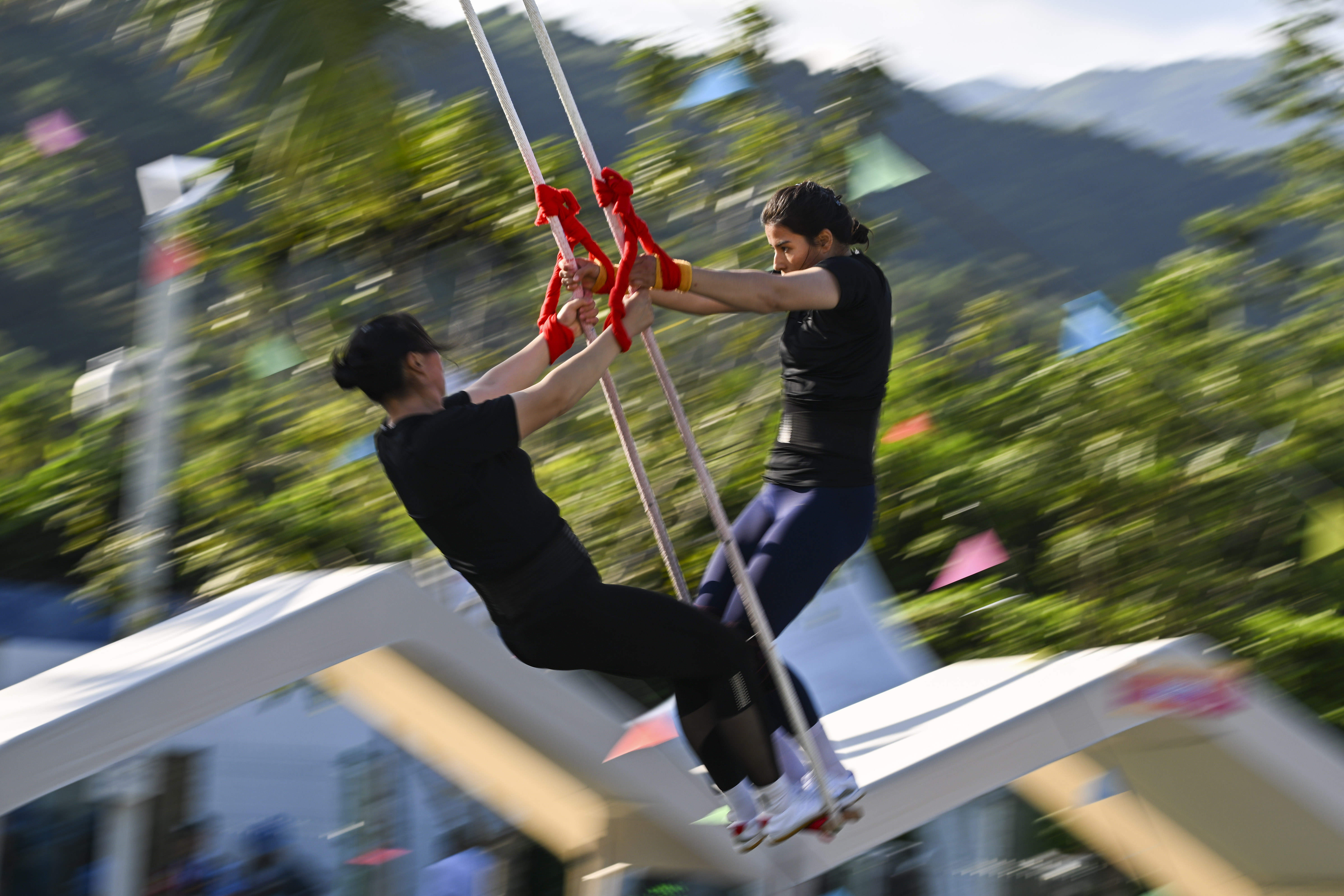 本屆運動會的鞦韆比賽是在12米高的鞦韆架上進行