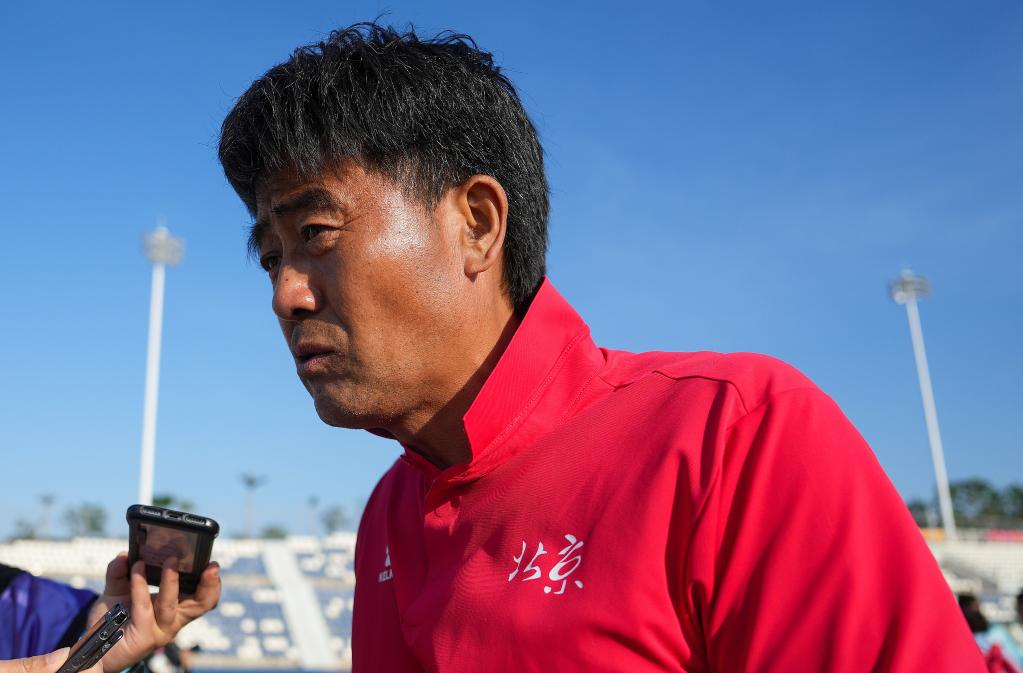 11月29日,北京隊教練張炳剛在比賽後接受採訪。新華社發(杜笑微 攝)