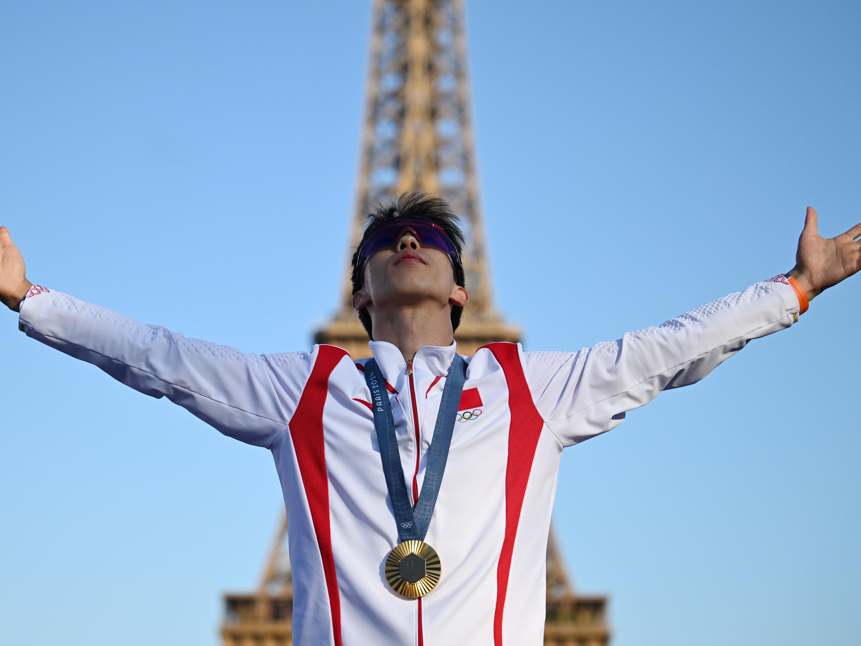 成為奧運冠軍三天后,龍道一來到法國巴黎埃菲爾鐵塔下的冠軍公園,與多個項目的獎牌獲得者一同歡慶奧運榮耀。龍道一戴着墨鏡出場,在音樂聲中邁着動感步伐,有節奏地高舉雙手打出拍子,點燃現場氣氛。