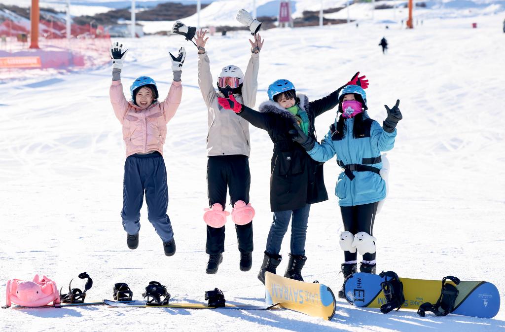 上海游客陳杏紅説:“這是我第一次來體驗傳説中的粉雪,真是來了就不想走。”