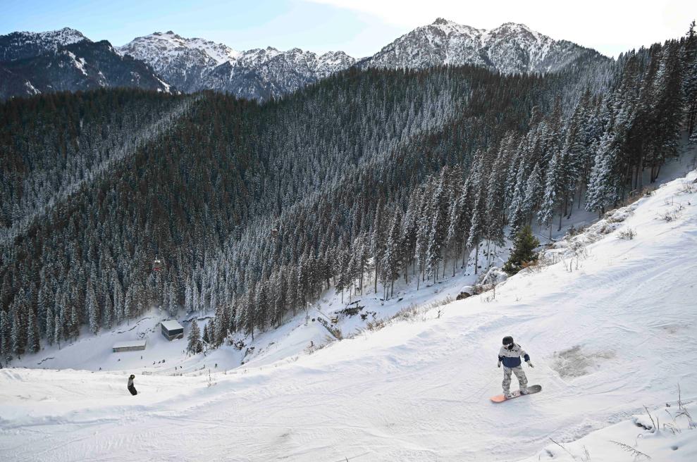 2024年11月24日,滑雪愛好者在新疆絲綢之路山地度假區滑雪。新華社記者 胡虎虎 攝