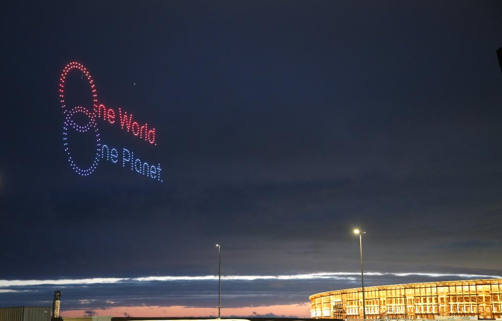 這是4月13日在日本大阪拍攝的無人機表演