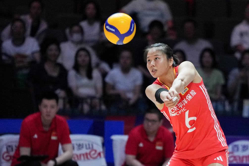 6月4日,中國隊球員龔翔宇在比賽中。當日,在北京舉行的2025世界女排聯賽(中國北京站)小組賽中,中國隊3比0戰勝比利時隊。新華社記者 鞠煥宗 攝