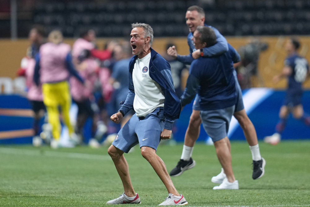 巴黎聖日耳曼主教練恩裏克在比賽中慶祝。新華社記者 黃宗治 攝
