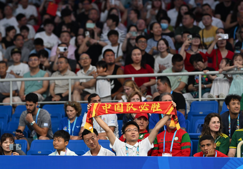 8月10日,觀眾在成都世運會比賽現場為中國選手加油。新華社記者 張博文 攝