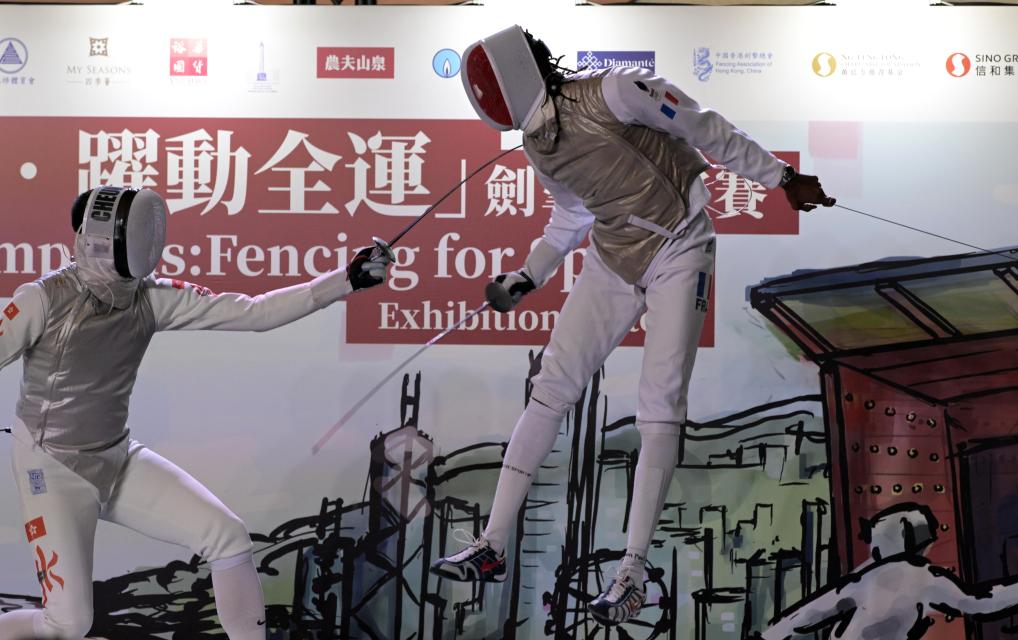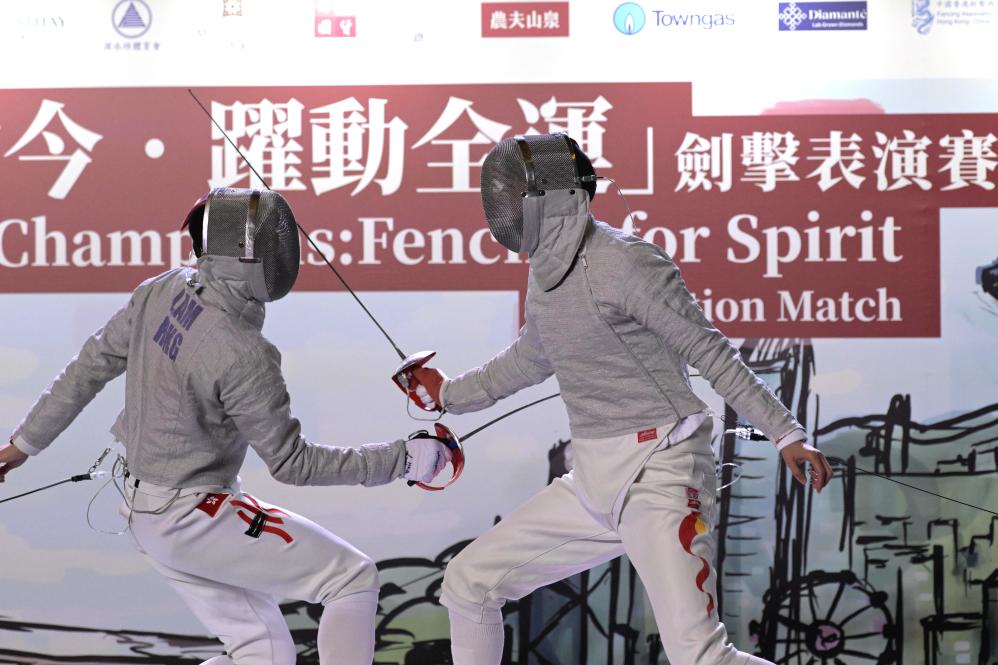 新華社香港8月26日電(記者王子江、王紅玉)一場以“劍萃古今·躍動全運”為主題的擊劍表演賽26日在香港故宮文化博物館舉行,2008年北京奧運會金牌得主仲滿身穿當年奪冠時的擊劍服,戰勝中國香港選手林衍聰。