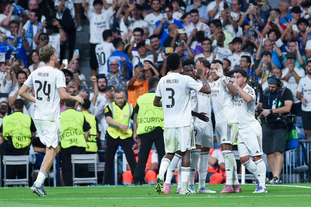 ↑9月16日,皇家馬德里隊在歐冠首輪比賽中,主場2:1戰勝法甲馬賽隊。新華社發(古斯塔沃·巴連特攝)
