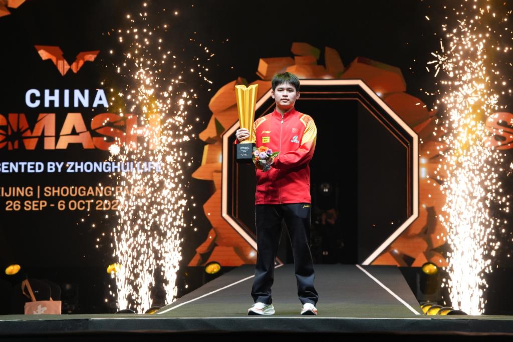↑2024年世界乒乓球職業大聯盟(WTT)中國大滿貫男子單打,中國選手林詩棟奪冠。新華社記者鞠煥宗攝