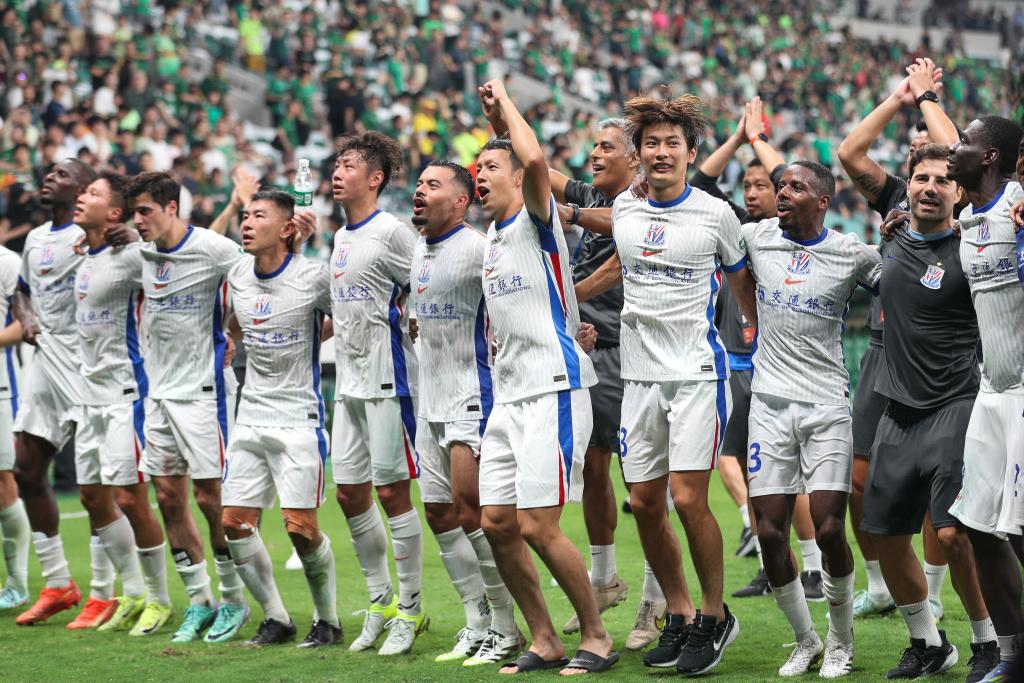 ↑7月19日,上海申花隊球員在比賽後。新華社發(那宇奇攝)