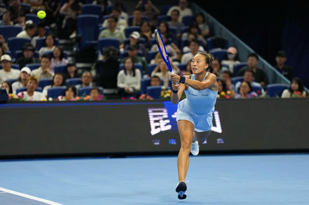 9月29日,鄭欽文在比賽中回球。新華社記者 那宇奇 攝
