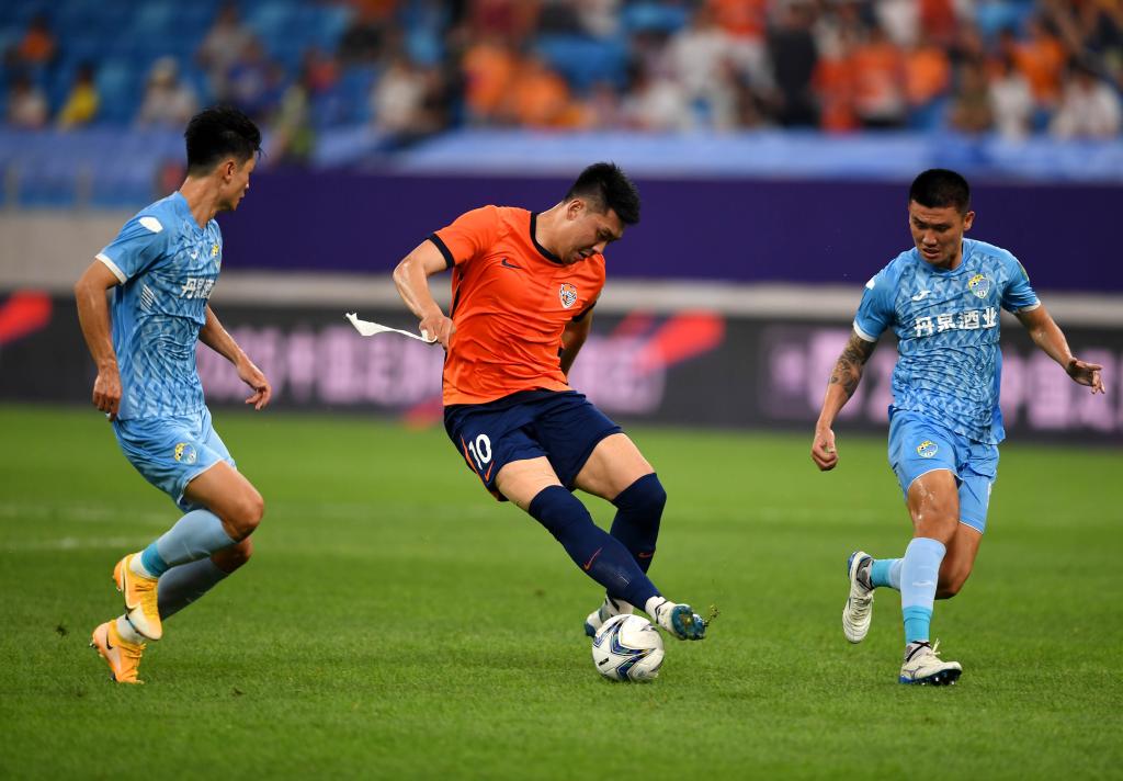 6月21日,青島海牛隊球員馮伯元(中)在足協盃比賽中。新華社記者 李紫恒 攝
