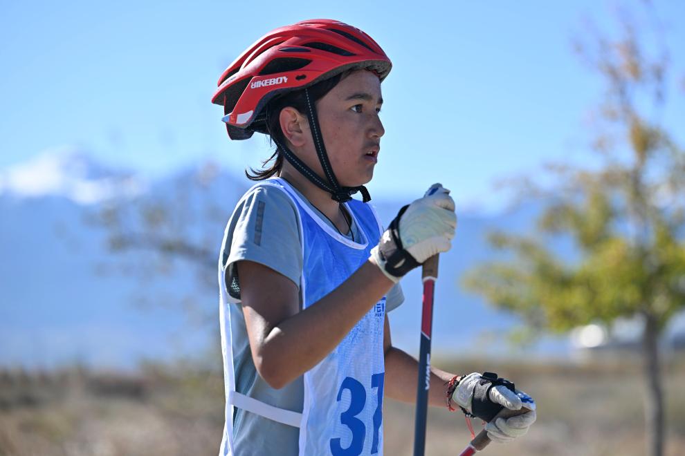 2024年10月5日,麥克麗亞·阿不都國甫在新疆維吾爾自治區第二屆冬季運動會青少年越野滑輪女子甲組5公里(傳統式)比賽中,她最終獲得亞軍。新華社記者 胡虎虎 攝