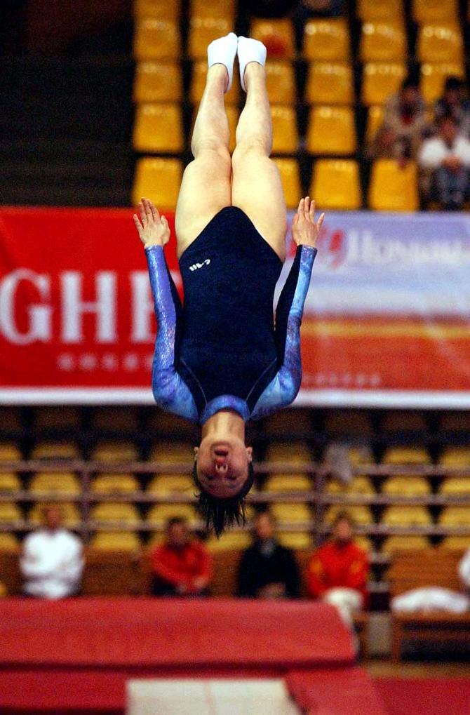 2003年11月20日,福建隊選手黃珊汕在蹦床女網個人決賽中奪冠。當日,為期3天的2003年全國蹦床冠軍賽在昆明落下帷幕。 新華社記者 譚熙鵬 攝