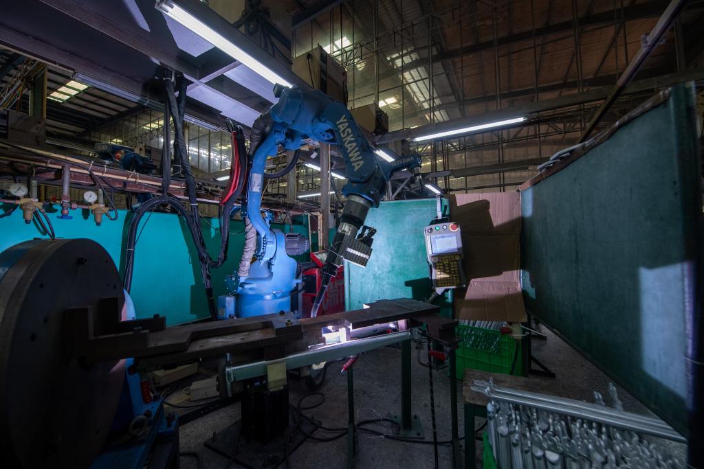 在深圳市喜德盛自行車股份有限公司生産線,機械臂正在焊接車架。新華社記者 毛思倩 攝