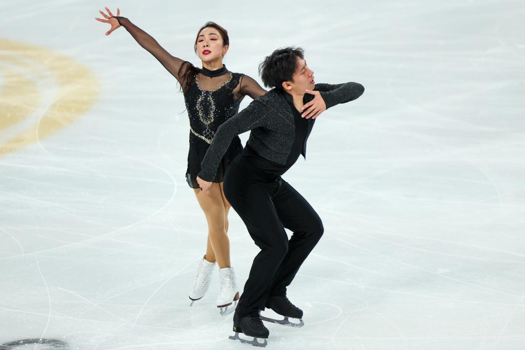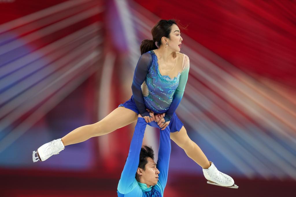 10月25日,隋文靜(上)/韓聰在2025年中國杯世界花樣滑冰大獎賽自由滑比賽中。新華社記者 黃偉 攝