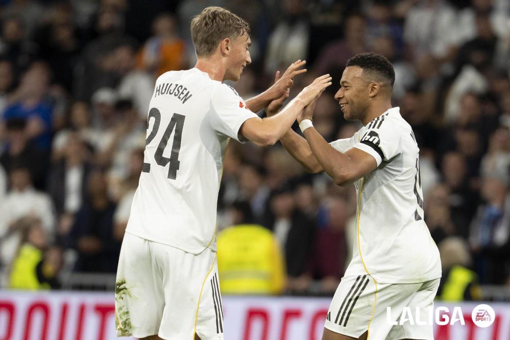 在上輪贏得“國家德比”、坐穩榜首後,皇馬本輪坐鎮伯納烏球場迎戰“蝙蝠軍團”。第19分鐘,塔雷加禁區內手球送點,姆巴佩主罰命中,為皇馬將比分改寫為1:0。第31分鐘,居萊爾左路底線附近送出傳中,姆巴佩小禁區前沿凌空墊射得手,比分變為2:0。