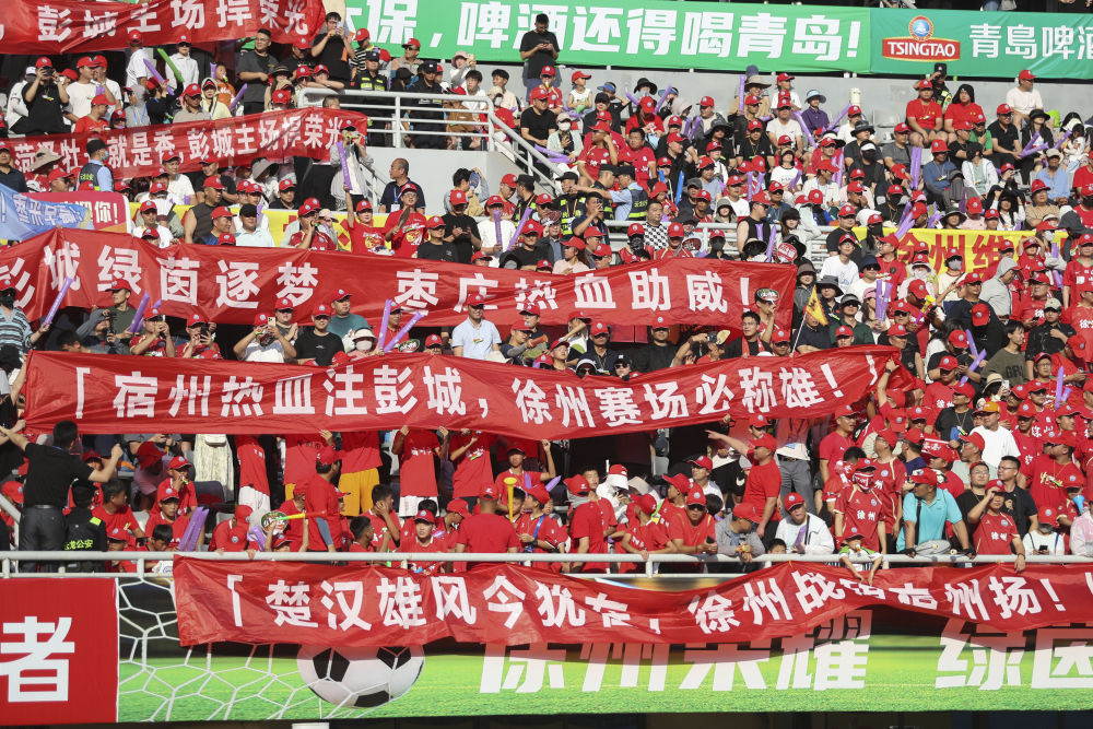 6月15日,來自徐州周邊城市的球迷們在現場觀賽。新華社發(白雪攝)