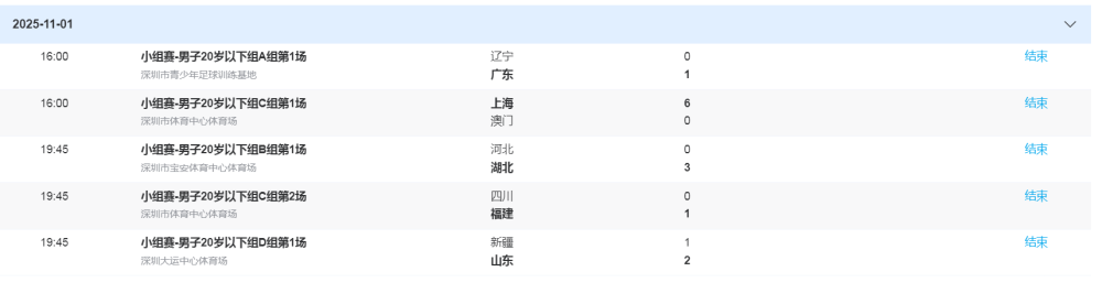 C組兩場比賽中,劉誠宇上演“帽子戲法”,王一凡、劉鐵誠和張俊傑各入一球,上海隊6:0大勝澳門隊。福建隊則憑藉鄧棽竹的制勝球1:0戰勝四川隊。B組湖北隊3:0擊敗河北隊。